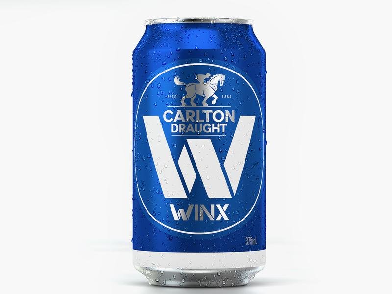 Emblazoned with a large white W in the same colour as Winx’s blue silks, the cans also feature her W S Cox Plate wins and a jockey riding the Carlton Draught Clydesdale.