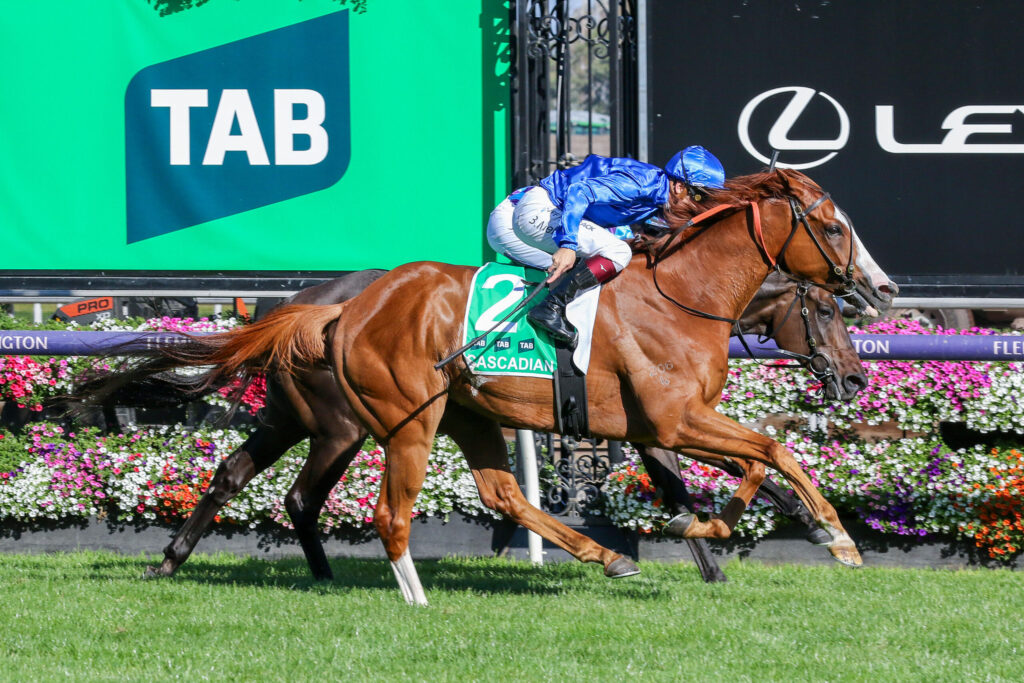 Like he did 12 months ago, Godolphin galloper Cascadian backed up from a placing in the All-Star Mile (1600m) to claim to the Group 1 2000m weight-for-age contest on Saturday.