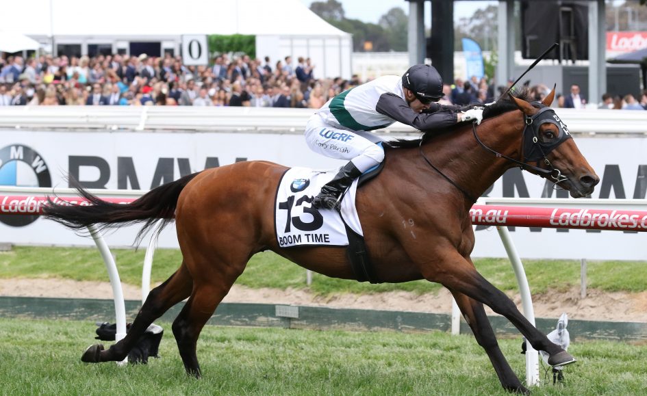 After winning the Caulfield Cup, Boom Time finished 15th behind Rekindling in the Melbourne Cup before embarking on an overseas trip.