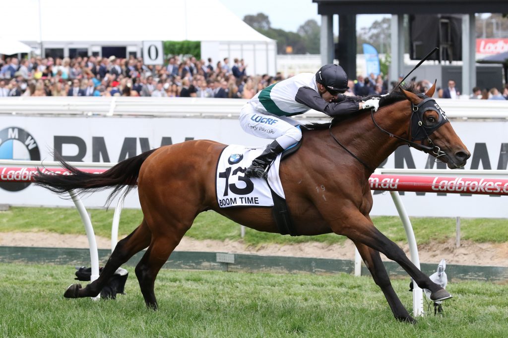 After winning the Caulfield Cup, Boom Time finished 15th behind Rekindling in the Melbourne Cup before embarking on an overseas trip.