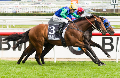 Last years Caulfield Guineas winner who backed up into the Cox Plate in which he ran a very gallant second. Opened as the $2.70 favourite for the race when fields where released but has been backed into his current quote of $2.30. It looks a race which if any other runners can beat All Too Hard past the post they will win the race.