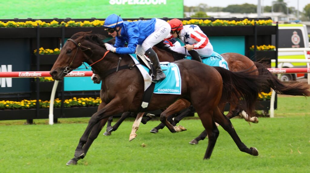 The second named-foal from the Street Cry mare Speedway, Broadsiding logged another Group 1 win first-up as a three-year-old in the Golden Rose (1400m), which was his only start before the Caulfield Guineas.