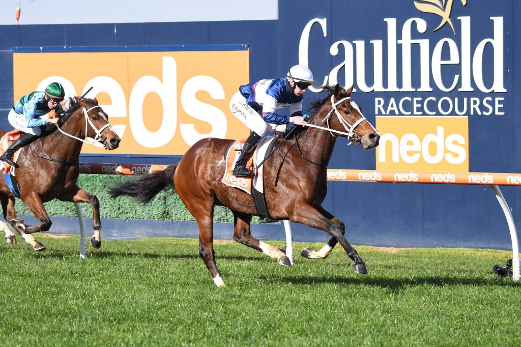 English import Skyman has made an encouraging start to his Australian racing career with a convincing win in a benchmark race at Caulfield.