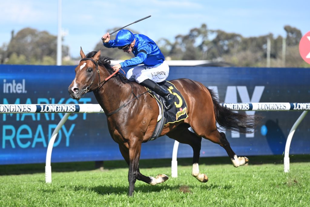 Sam Clipperton settled Golden Mile ($3.40) on the back of the speed and when he hooked him out in the straight, the colt zoomed down the outside to win by 3-1/4 lengths over Matcha Latte ($21) with Basquiat ($10) another short neck away.