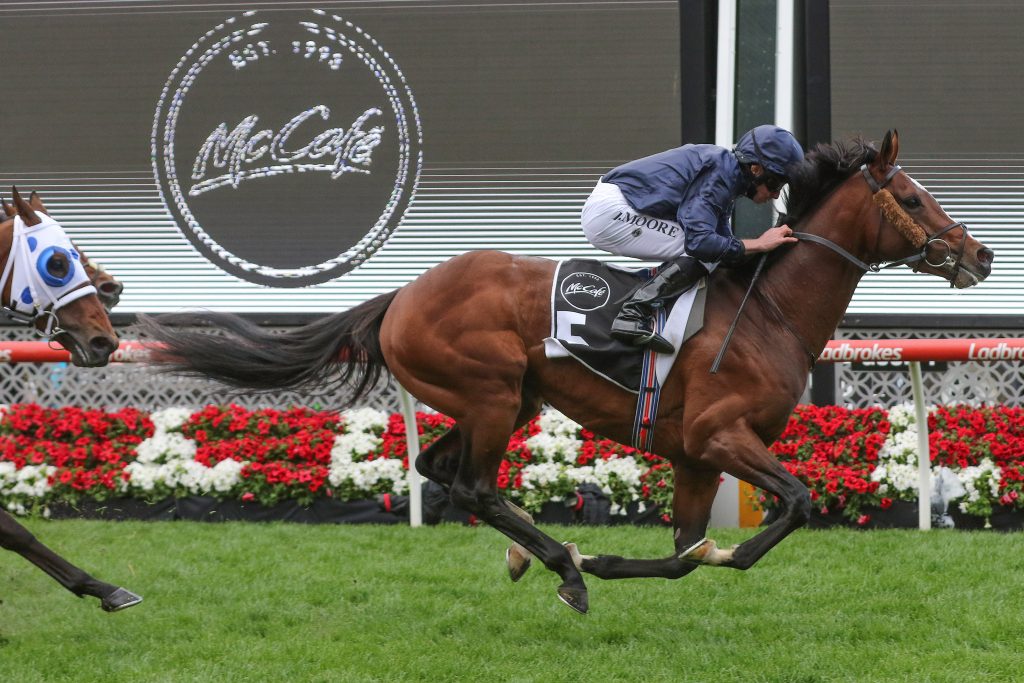 From the stable of champion Irish trainer Aidan O’Brien and ridden by Ryan Moore, Hunting Horn was well supported to start $4.20 in Saturday’s Group Two Moonee Valley Gold Cup (2500m) and drew away from Mr Quickie over the final 150m to score by 1-1/4-lengths.