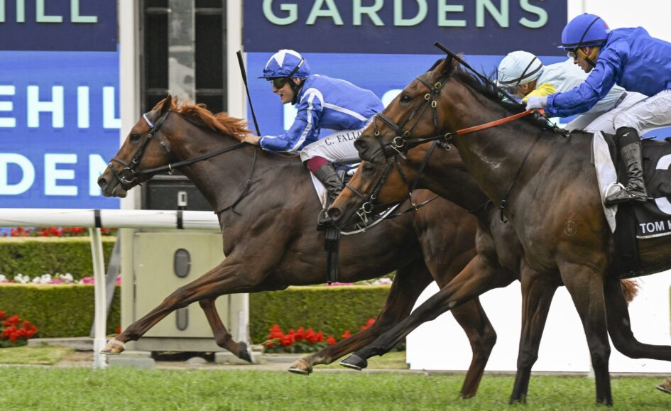 Ridden by the UK-based Cieren Fallon, Lake Forest ($19) settled in the second half of the field and unleashed a whirlwind finish along the inside to burst through in the final bounds and deny French visitor Lazzat ($4.80) by a half-length, giving the European raiders a one-two finish.