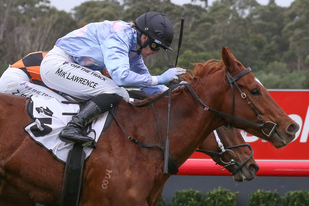 Apprentice Mikaela Lawrence registered a breakthrough city win guiding home the Patrick Payne-trained Bigolino at Sandown.