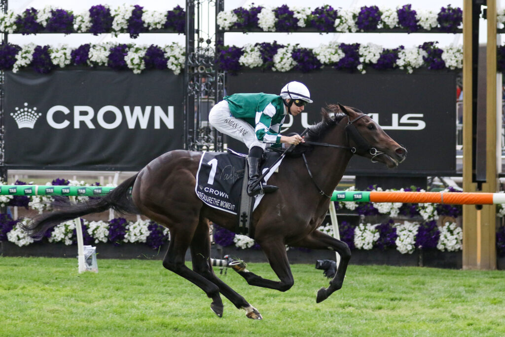 Just as she did in the traditional Oaks lead-up in the Wakeful Stakes (2000m) at Flemington last Saturday, Treasurethe Moment scored a comprehensive win in Thursday’s Group 1 classic at 2500m for three-year-old fillies.