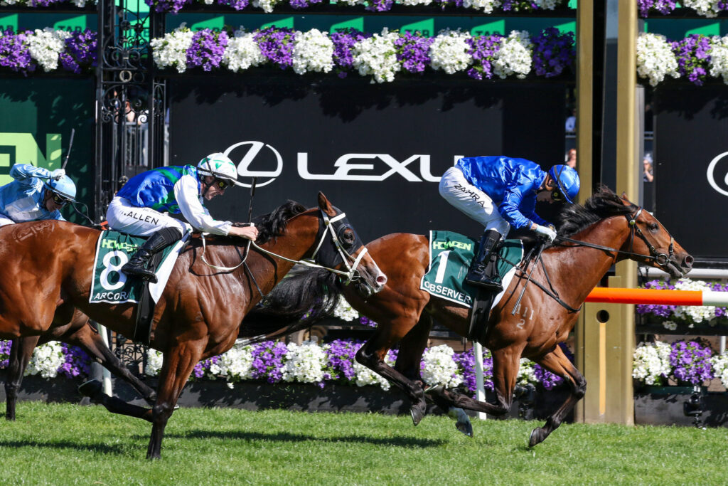 Observer delivered a headline moment on the opening day of the Melbourne Cup Carnival, scoring an authoritative victory in the $2 million Victoria Derby for Godolphin, trainer Ciaron Maher and jockey Mark Zahra.