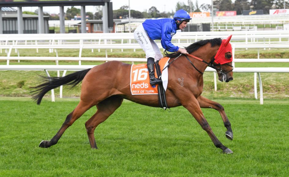 Under a perfect ride from Brian Higgins, Prix De Turn ($2.80) took out the Ladbrokes Mega Multi Plate (1500m) at Sandown on Wednesday, defeating the $2.60 favourite Savonia by three lengths with Man Of Heart ($5.50) a length away third.