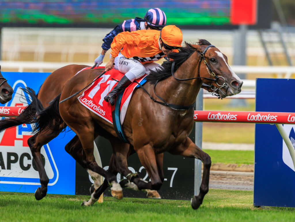 Cleo Cat, who was the more fancied of Dabernig’s two runners at $11 after wins at her only five prior starts, issued a challenge in the straight but had to settle for sixth position, 1-1/2 lengths from the winner.