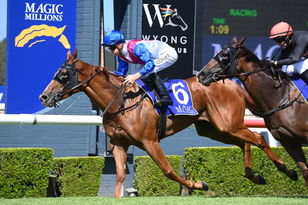 As a Group One winner,Royal Merchant looked to have the Magic Millions Wyong 3YO & 4YO Stakes at her mercy and that’s how it panned out, despite a late scare from stablemate Semana.