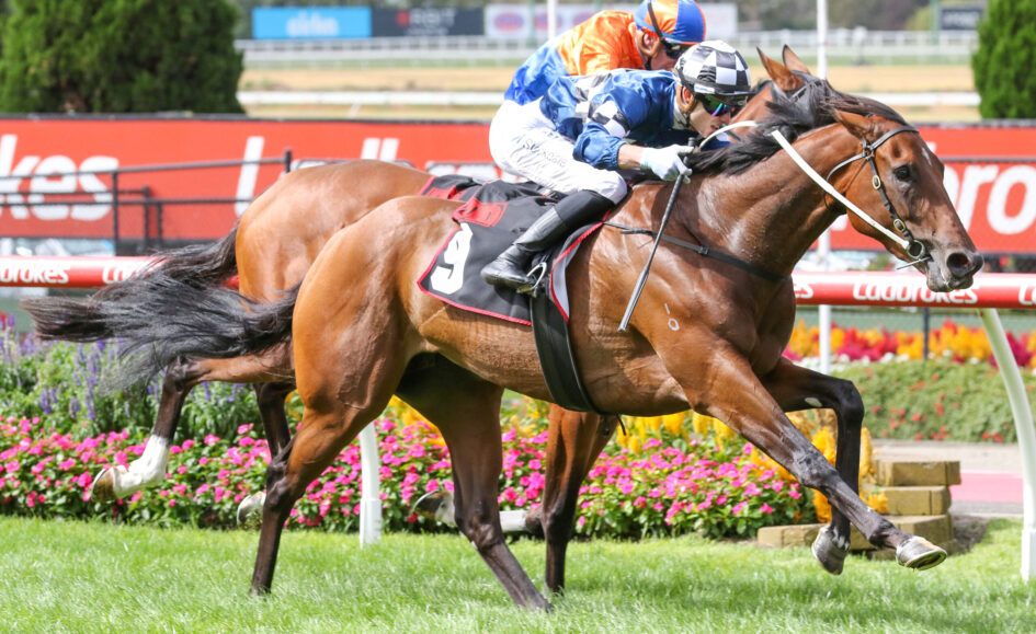 That day the filly was dropping back in distance to 1600m after racing to an eight-length romp in maiden company at Geelong over 1715m a week earlier.