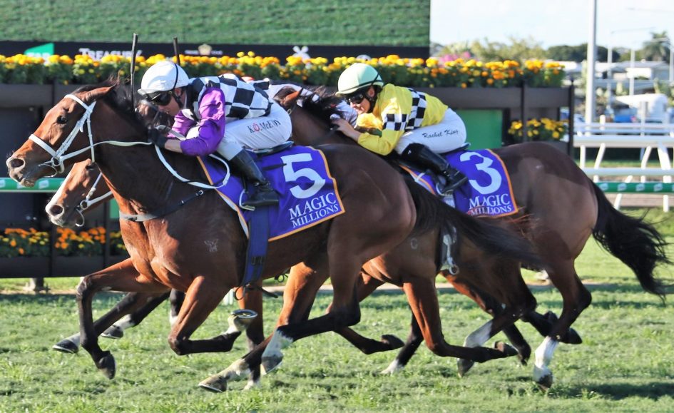 After overcoming difficulties to win the Pam O’Neill Stakes for Kerrin Mcevoy last start, she again made a sustained run to chase down topline performer Nettoyer and capture Saturday’s $500,000 Magic Millions National Classic (1600m).
