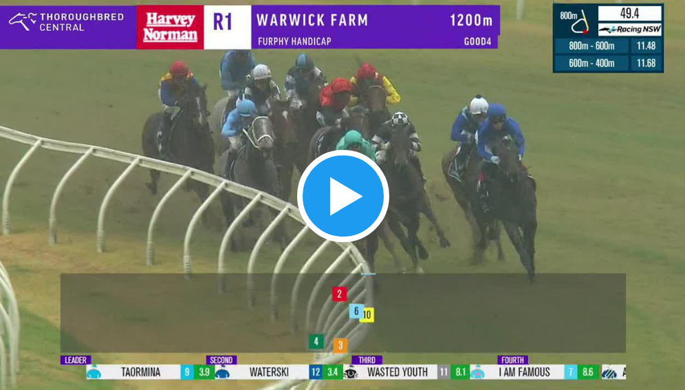 Taormina ($3.90) showed the benefit of that patience in the Furphy Handicap (1200m) at Warwick Farm on Wednesday, leading throughout for Tim Clark to score by three-quarters of a length over Arctic Glamour ($5.50) with I Am Famous ($6.50) third.