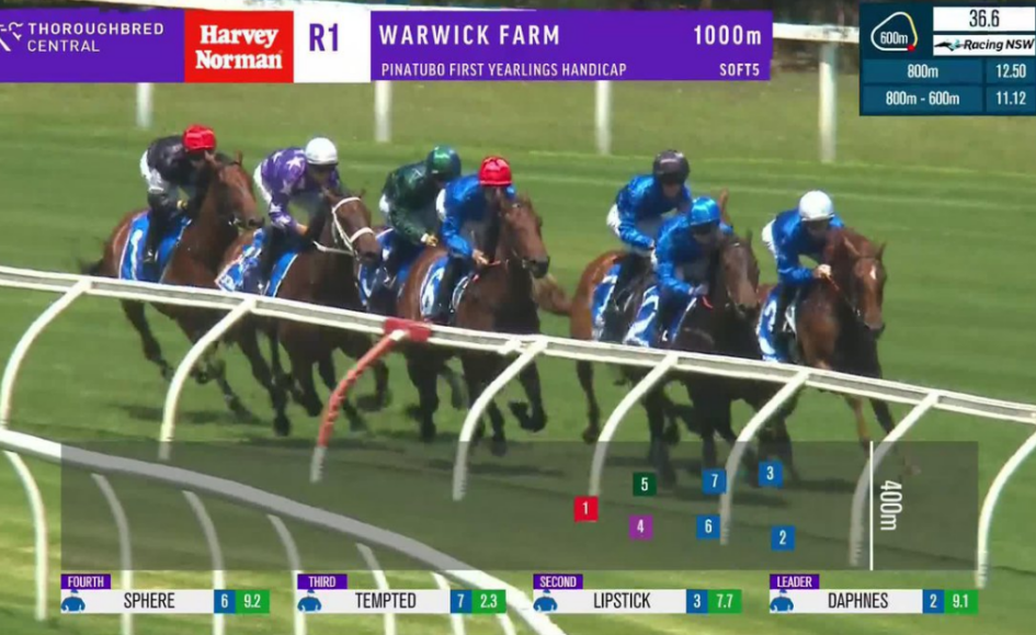 It was filly Tempted ($2.40 fav) who came out on top, the half-sister to multiple stakes winner Kallos stalking stablemate Daphnes ($8.50) and overpowering her in the straight to take out Wednesday’s Pinatubo First Yearlings Handicap (1000m).