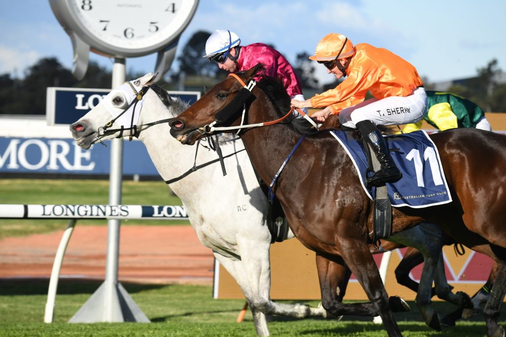 A late decision to roll the dice and run Albumin on a wet track at Rosehill has paid dividends with the ghostly grey grabbing victory in a photo finish.