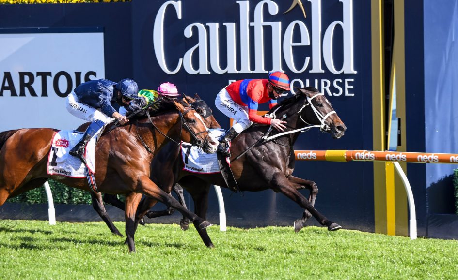 Australia’s premier trainer Chris Waller and jockey Mark Zahra landed their first Caulfield Cup wins when outstanding five-year-old Verry Elleegant held off international raider Anthony Van Dyck.