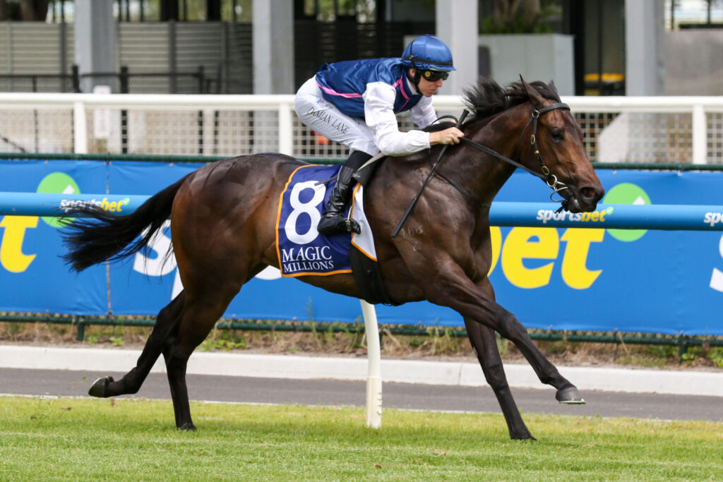 The filly, a $250,000 purchase from Widden Stud’s draft, is out of the Big Brown mare Showcase, a granddaughter of Group 1 winner Spectrum. Her race debut was an impressive 2-3/4-length victory in the Magic Millions Victorian Classic at Caulfield on December 14. Following this win, she traveled to Queensland, where she recorded a comfortable victory in an 800m trial at the Gold Coast on New Year’s Eve.