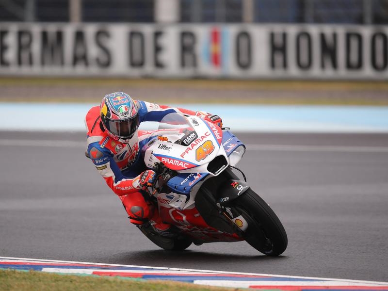 The Pramac Ducati rider opted for slicks on a drying track while most of the big names decided to stay on wet weather tyres, and seized the top slot in the dying seconds at the Termas de Rio Hondo circuit.