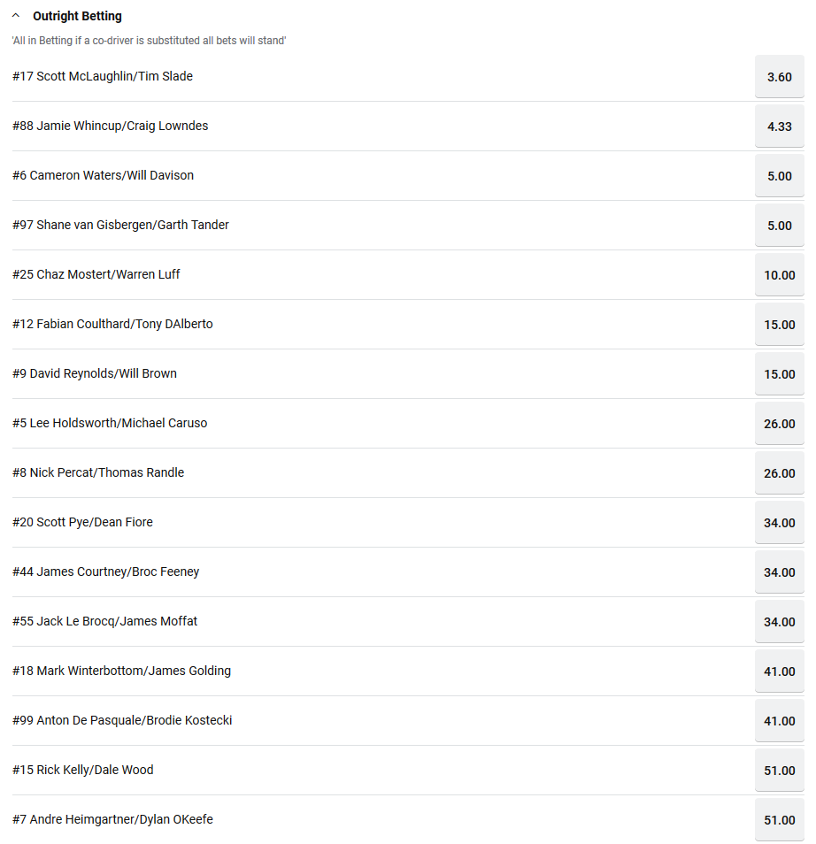 Tip: #88 Jamie Whincup/Craig Lowndes at $4.33