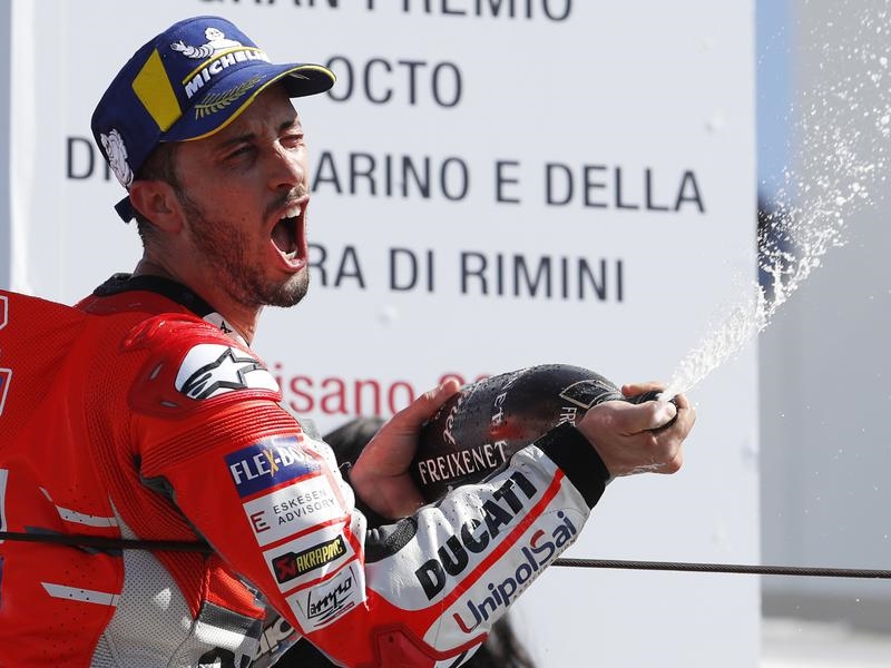 Italian Andrea Dovizioso won the San Marino Grand Prix for Ducati while reigning world champion Marc Marquez finished second to increase his MotoGP championship lead to 67 points.
