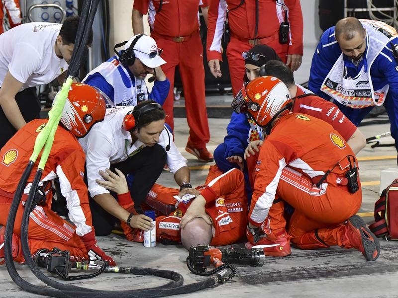 The Ferrari mechanic who was hospitalised with a broken leg after being struck by Kimi Raikkonen’s car during Sunday’s Bahrain F1 Grand Prix says his surgery went well.