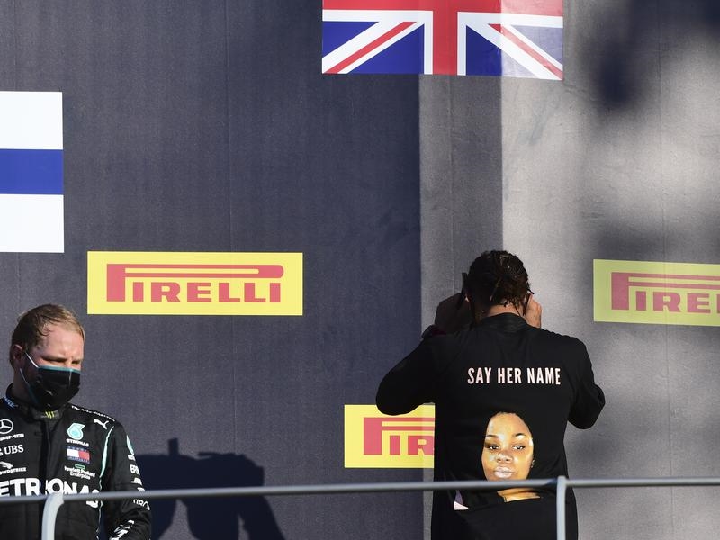 Hamilton has regularly worn a “Black Lives Matter” T-shirt when kneeling on one knee in an officially-sanctioned anti-racism protest before the start of races this season.
