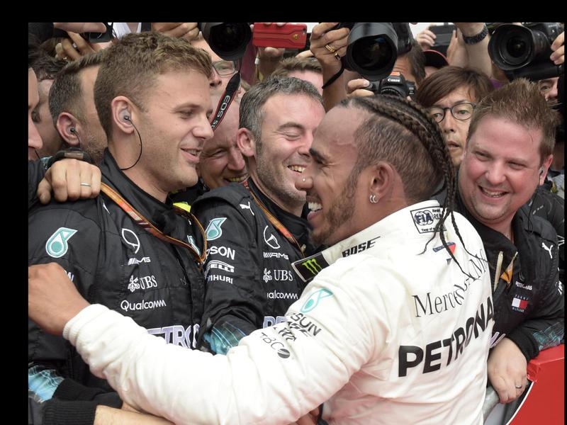Hamilton’s victory had catapulted him 17 points clear of Ferrari’s Sebastian Vettel, the home favourite who crashed out while leading on a wet and slippery track.