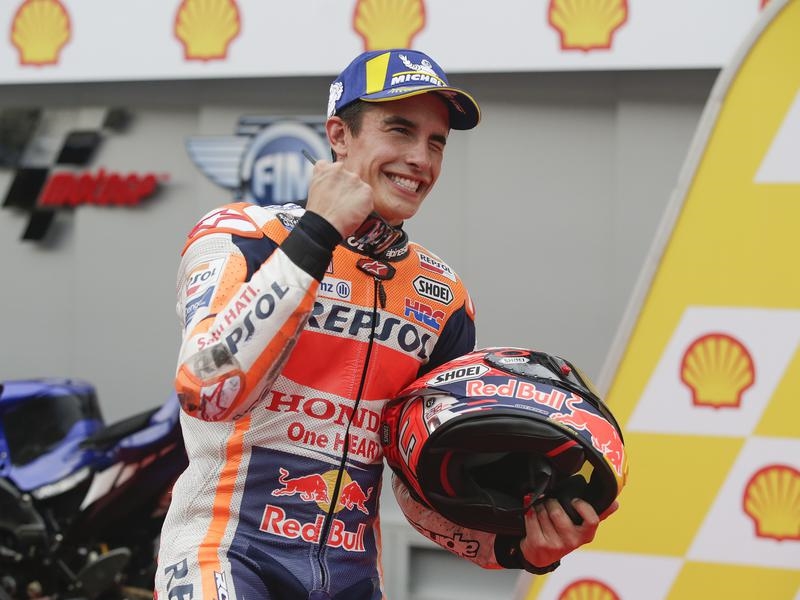 Marquez was unable to improve on his time because of a late tumble but was still too quick for Yamaha’s French rider Johann Zarco (2.12.709) and seven-time MotoGP world champion Valentino Rossi (2.13.009) who will join him on the front row.