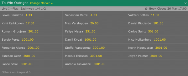 Riciardo has now gotten out to $101 with Bet365.com.au to win Sunday’s event.