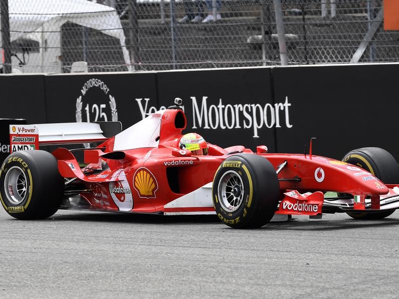 German Mick Schumacher has wowed fans at Hockenheim by driving the Ferrari in which his father Michael had won his record seventh Formula One title in 2004.