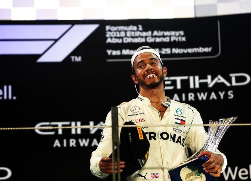 Hamilton won the 11th grand prix of his title-winning campaign with a dominant performance at the final race in Abu Dhabi on Sunday, and celebrated by going backstage at a Guns N’ Roses concert.