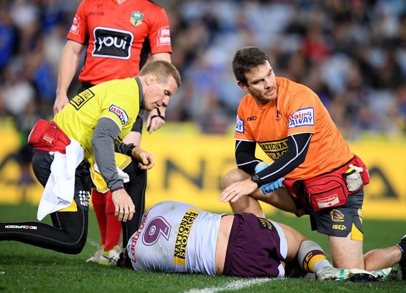 After copping friendly fire from Adam Blair while trying to run a block play on Michael Jennings, McCullough was assisted from ANZ Stadium with 12 minutes remaining.