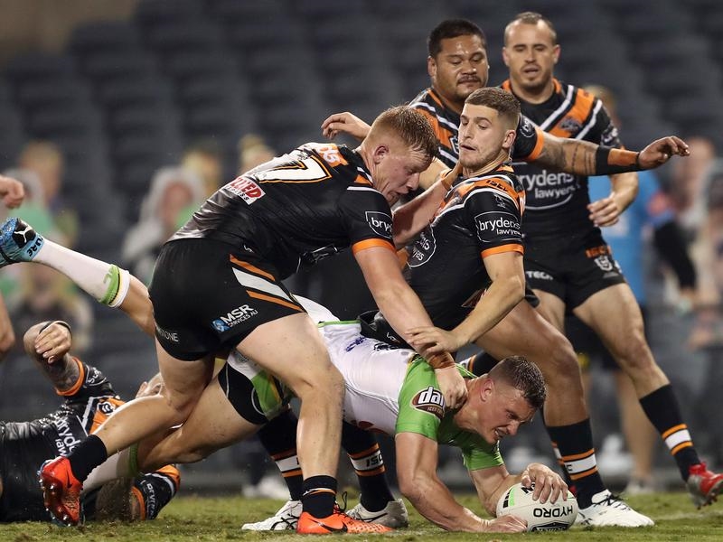As the Raiders dominated the ball at Campbelltown in the second half, he was one of four Tigers to miss Jack Wighton as he stepped his way to the line.