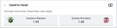 Huge match on Sunday as the Raiders and Roosters do battle in the nation’s capital. Both teams are in ripping form ahead of this game and the market is struggling to split the two premiership contenders, with the Roosters slight favourites.