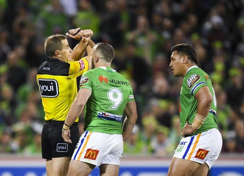 Papalii was put on report following the shot on South Sydney’s Adam Doueihi but it was his Raiders teammate Sia Soliola who ended up Saturday’s charge sheet.