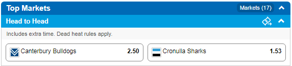 Cronulla Sharks at $1.52