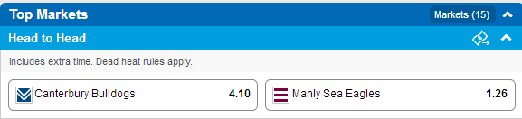 Sportsbet: Bulldogs $3.75 Sea Eagles $1.27