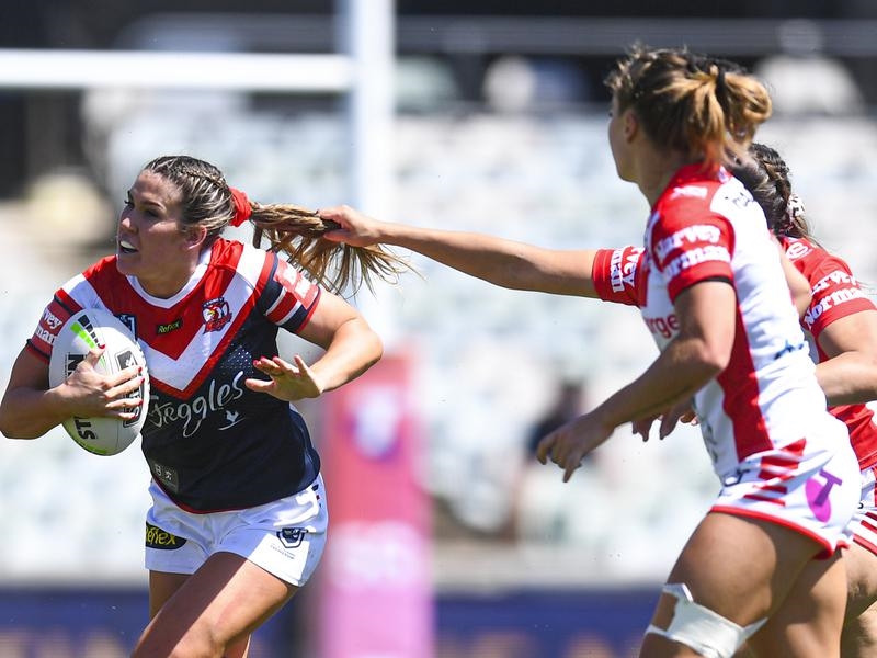 The first try of the women’s third season came from pint-sized Roosters dummy-half Nita Maynard, who darted over from close range, only for the Dragons to respond through Tiana Penitani.