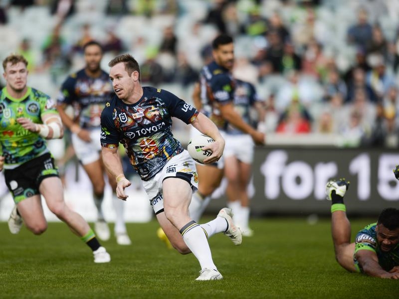 The seesaw affair continued when Cowboys centre Justin O’Neill crashed over to wrestle back the lead and they extended the margin after halftime when Michael Morgan kicked for an unmarked Kyle Feldt to score in the corner.