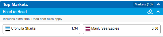 Tip: Cronulla Sharks at $1.34