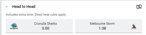 The last time these sides met the Storm walked away 22-6 winners in Week 3 of the Finals. It’s worth keeping in mind Cronulla won 14-4 at home against Melbourne last year, while they also held on for a narrow 17-14 victory at AAMI Park in August.