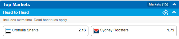 Sydney Roosters at $1.70