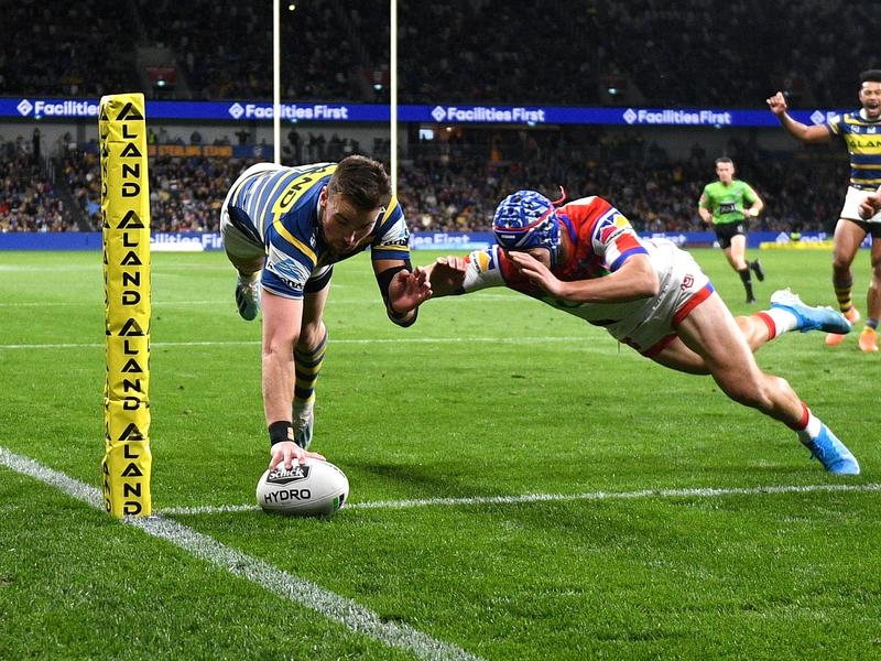 From there, it was all Eels for the rest of the half, with a desperate cover tackle from Kalyn Ponga momentarily preventing a second for Gutherson.