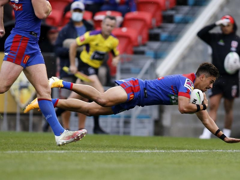 In front of some of the club’s premiership heroes on old boys day, the Knights put on an attacking masterclass through Mitchell Pearce and Kalyn Ponga.