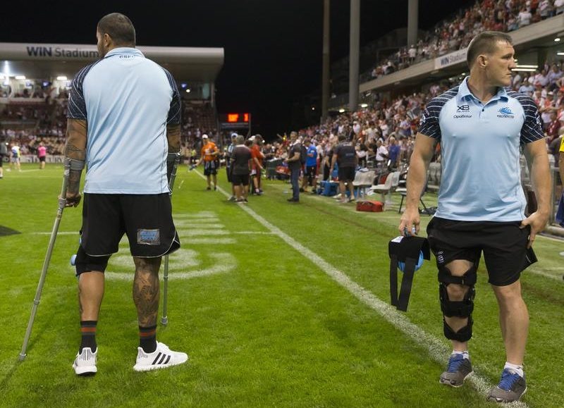 He limped from the field just before halftime and later hobbled back to Cronulla’s bench on crutches and with a brace on his left knee.