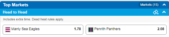 Tab Sportsbet: Sea Eagles $1.80 Panthers $2