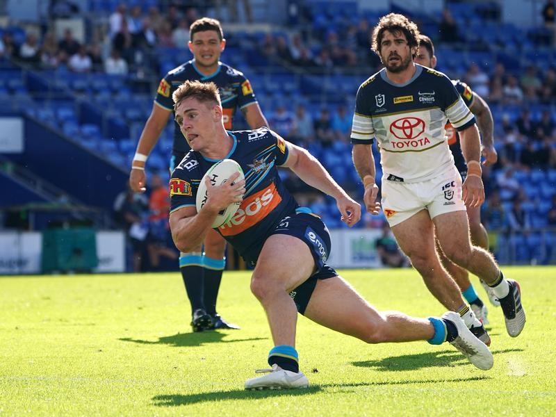 Brimson lit up CBUS Super Stadium with a thrilling 95-metre try in the second-half of the Titans’ 36-6 mauling of the Knights.