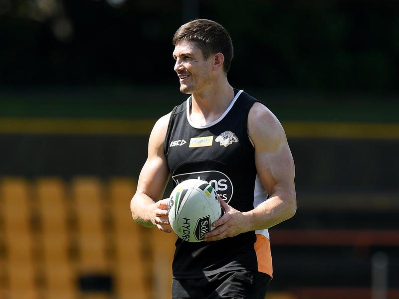 It was his right knee that forced him to give the game away and not his left knee which underwent two reconstructions – in 2015 in his final year at Manly and again in 2016 after managing just two games in his debut season at the Tigers.